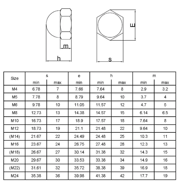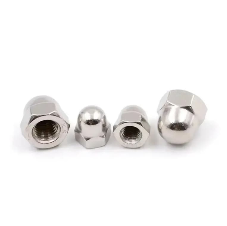 Cap Nut Providing a smooth finish, cap nuts may also be referred to as acorn nuts. By covering a screw head, the cap provides a catch-free surface and presents the convenience of a hex-shaped nut for tightening and loosening. Jannat offers cap nuts in a range of sizes, and materials, including alloy, stainless steel, and much more. Ask us about platings available on certain materials.